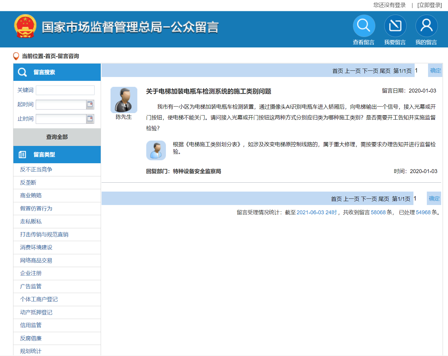 - 下一篇:通过按键方式加装梯控,属于一般修理,不需要监督检验 2021/6/4