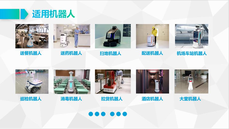1、机器人替代人工越来越被广泛应用,如扫地机器人、服务机器人、送餐机器人、巡检机器人、送药机器人、消毒机器人等;