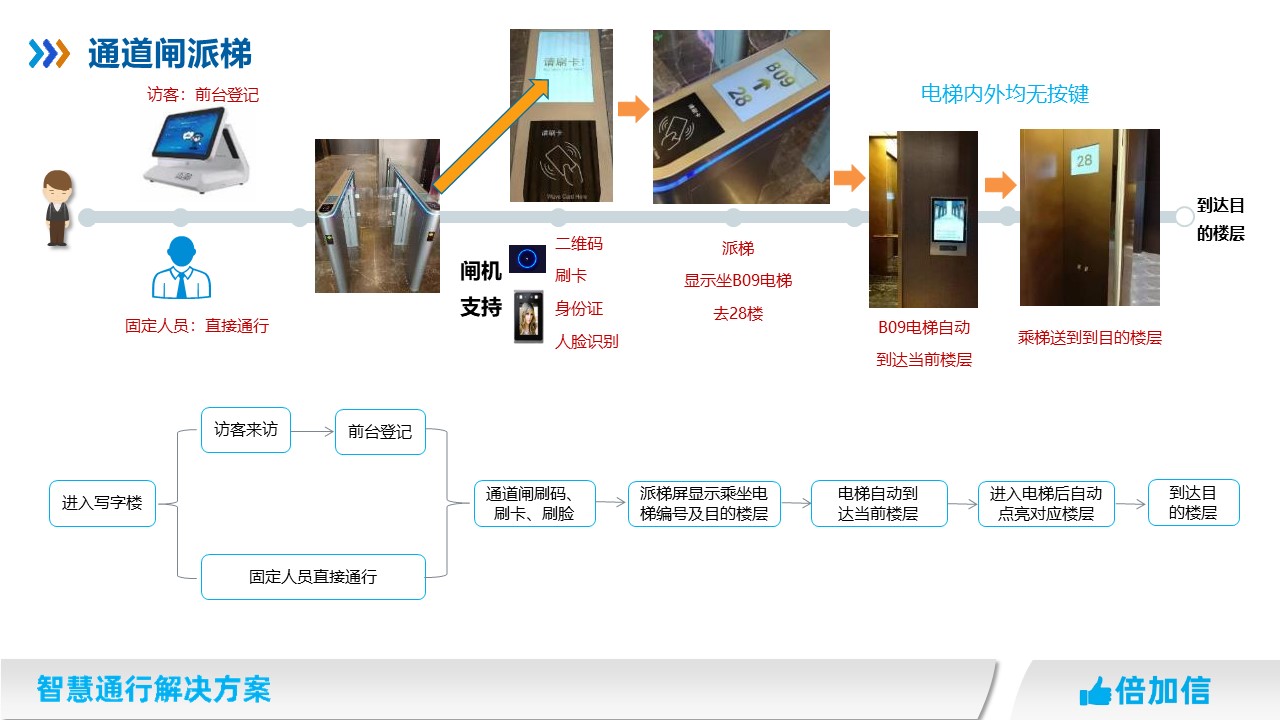 4、通道闸上显示屏,直接显示当前人员坐哪部梯去对应楼层信息;