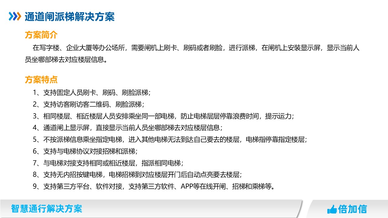 9、支持第三方平台、软件对接,支持第三方软件、APP等在线开闸、招梯和乘梯等。