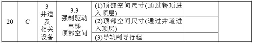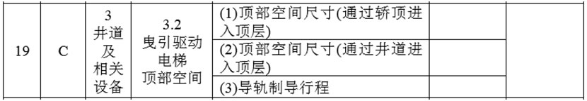 ②井道顶部最低部件与轿顶设备的最高部件之间的自由垂直距离不小于0.30 m,与导靴或者滚轮、钢丝绳附件、垂直滑动门横梁等的自由垂直距离不小于0.10 m;