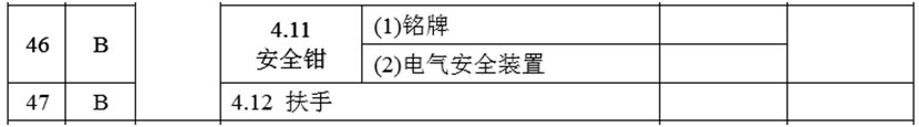 (22)增加4.12项,项目及类别为:“扶手 B”,检验内容与要求为:“供乘客抓握的扶手、立柱等装置应当固定可靠”;