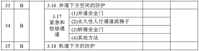 (16)增加3.17项,项目及类别为:“紧急和检修通道 B”,检验内容与要求为: