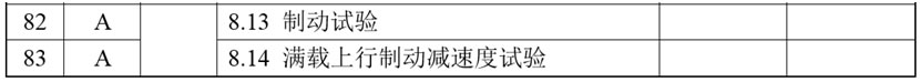 (27)增加8.14项,项目及类别为:“满载上行制动减速度试验 A”,检验内容与要求为:“装载额定载重量的运载装置以正常运行速度上行,运行至倾斜角为最小值区域时切断电动机和制动器供电,制动过程中轿厢水平方向的平均减速度应当不大于0.25 gn,垂直方向的平均减速度应当不大于1.0 gn”;