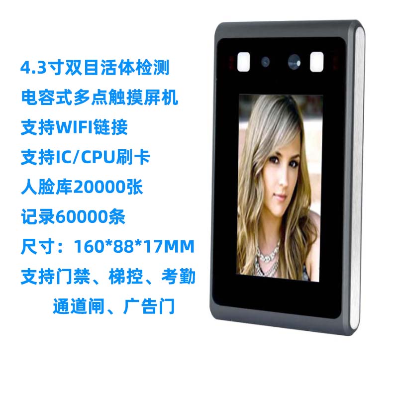 人脸识别梯控系统4英寸IPS全视角LCD显示屏;