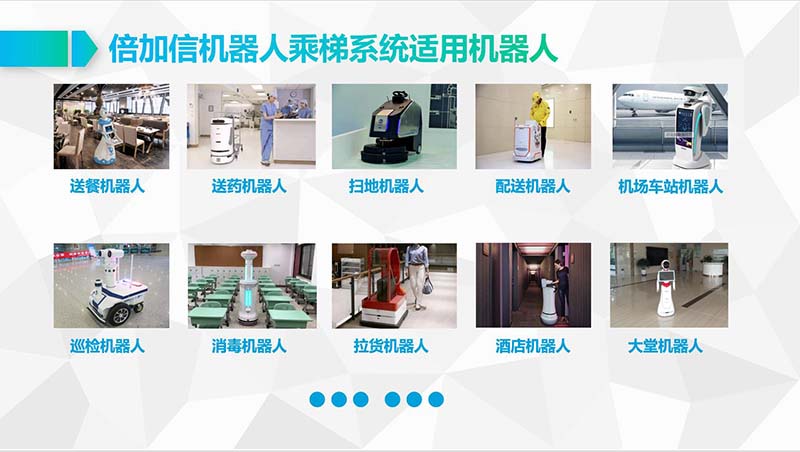 倍加信科技另有机器人WIFI乘梯、机器人蓝牙乘梯、机器人云通讯乘梯、机器人LoRa乘梯、机器人ZigBee通讯乘梯、机器人2.4G通讯乘梯、机器人语音乘梯、机器人5G乘梯等乘梯解决方案。