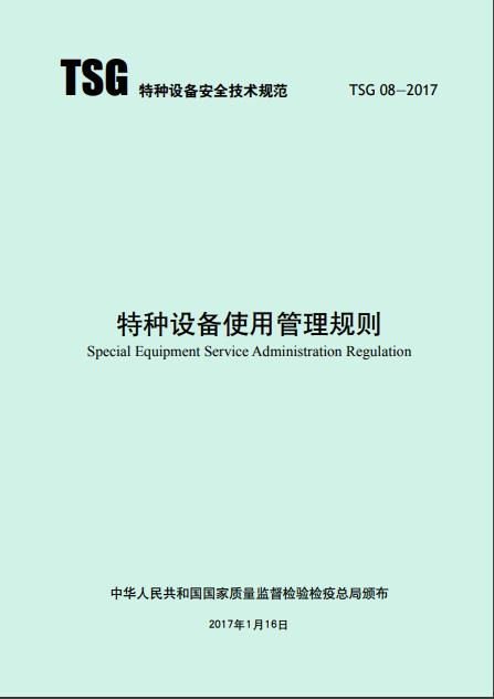 《特种设备使用管理规则 TSG 08—2017》国家质量监督检验检疫总局颁布
