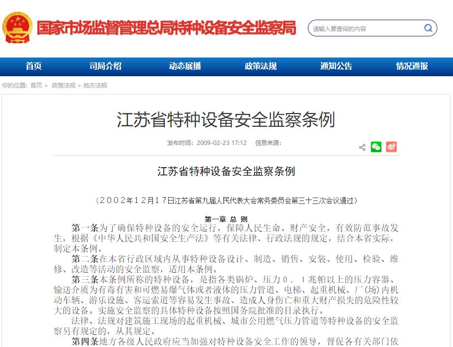 江苏省特种设备安全监察条例