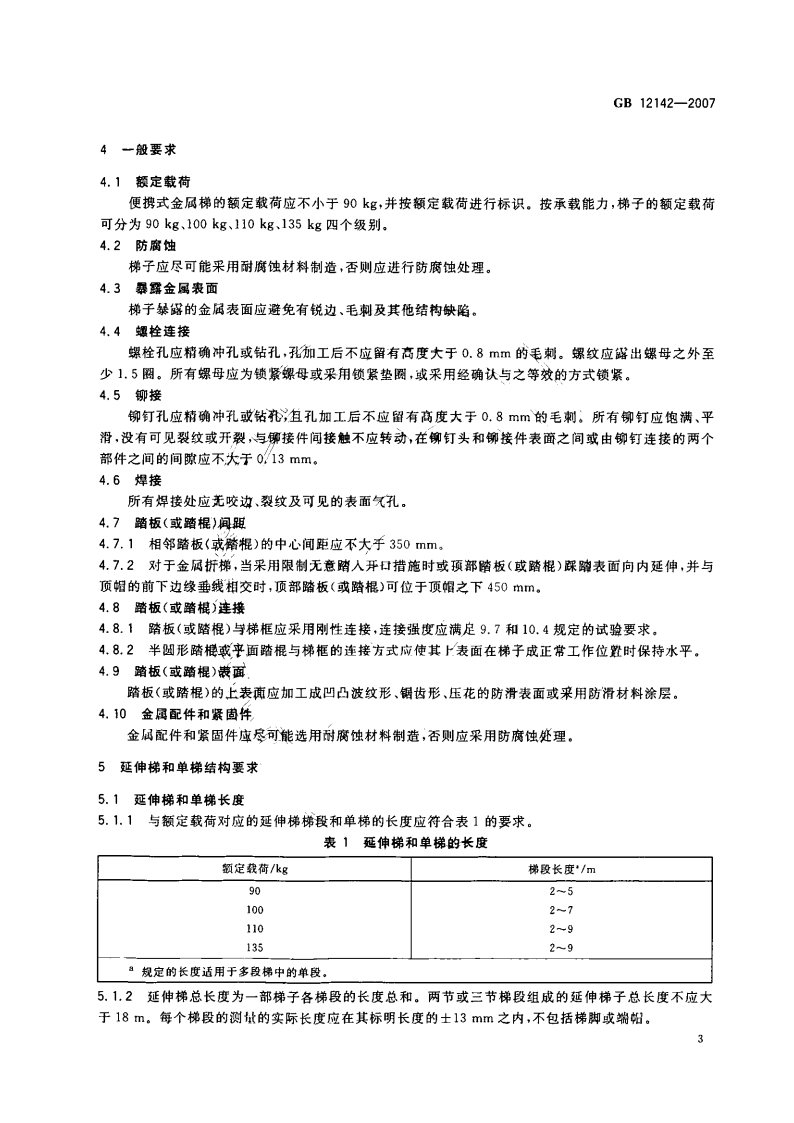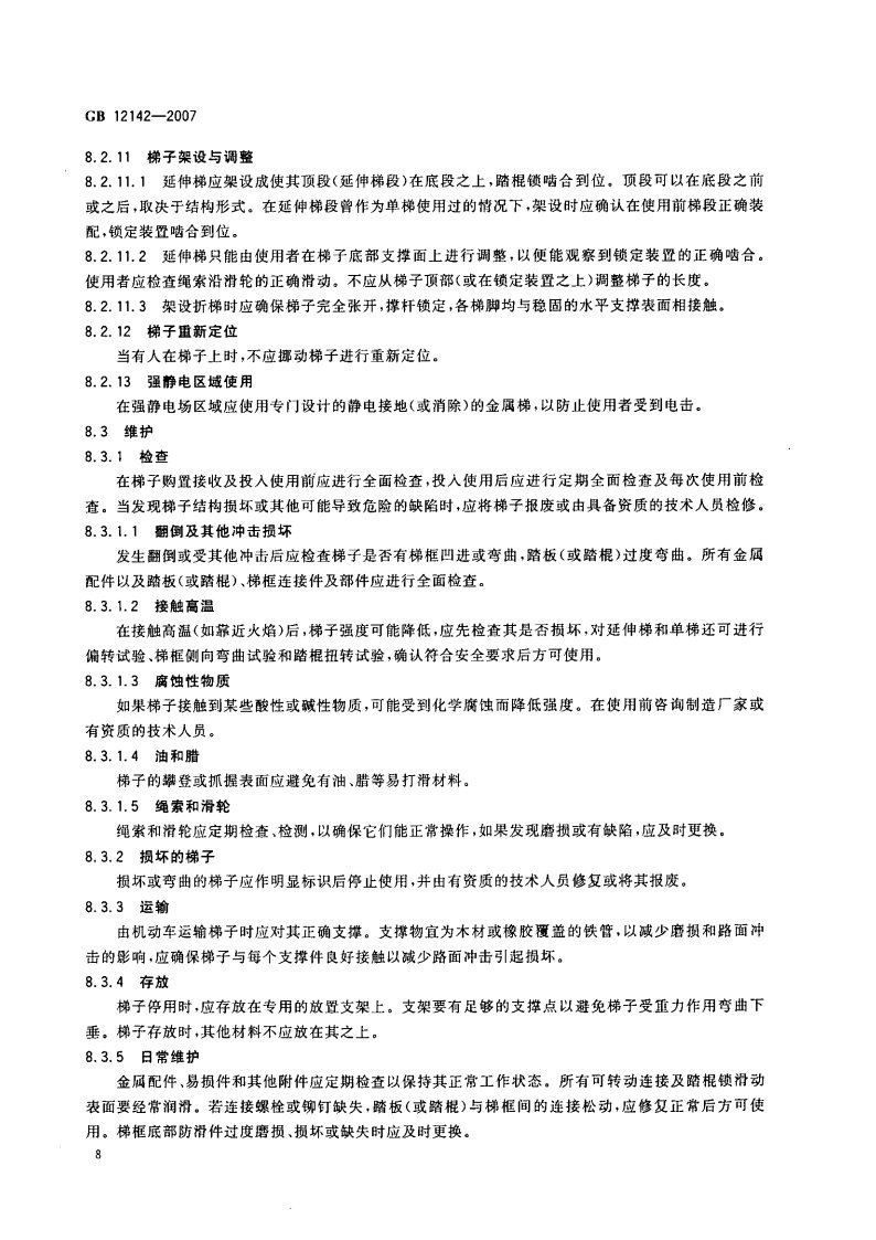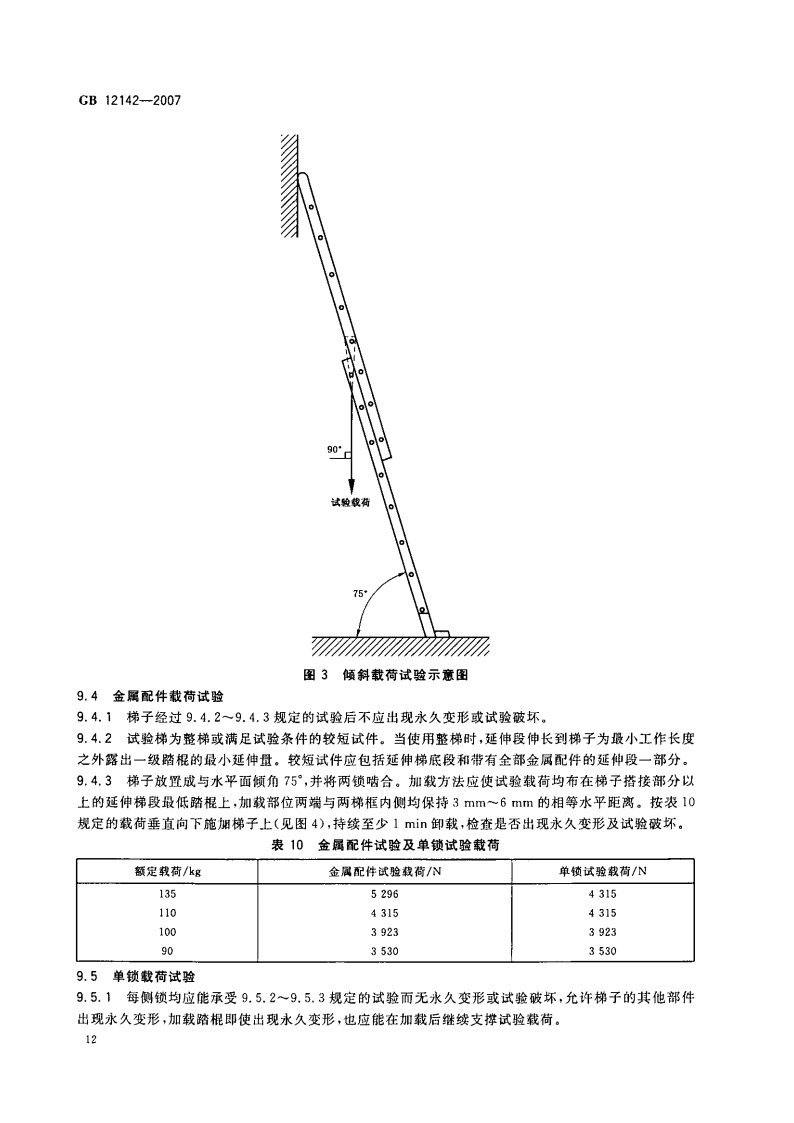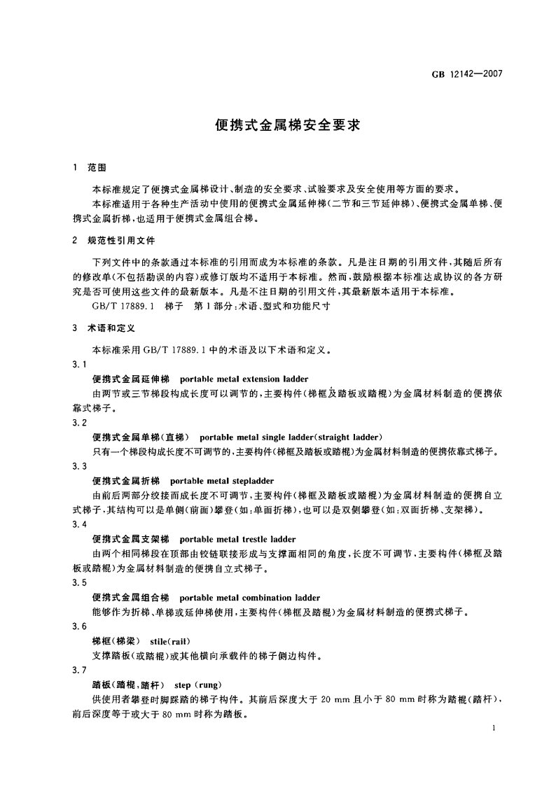 《便携式金属梯安全要求 GB 12142-2007》国家质量监督检验检疫总局、国家标准化管理委员会