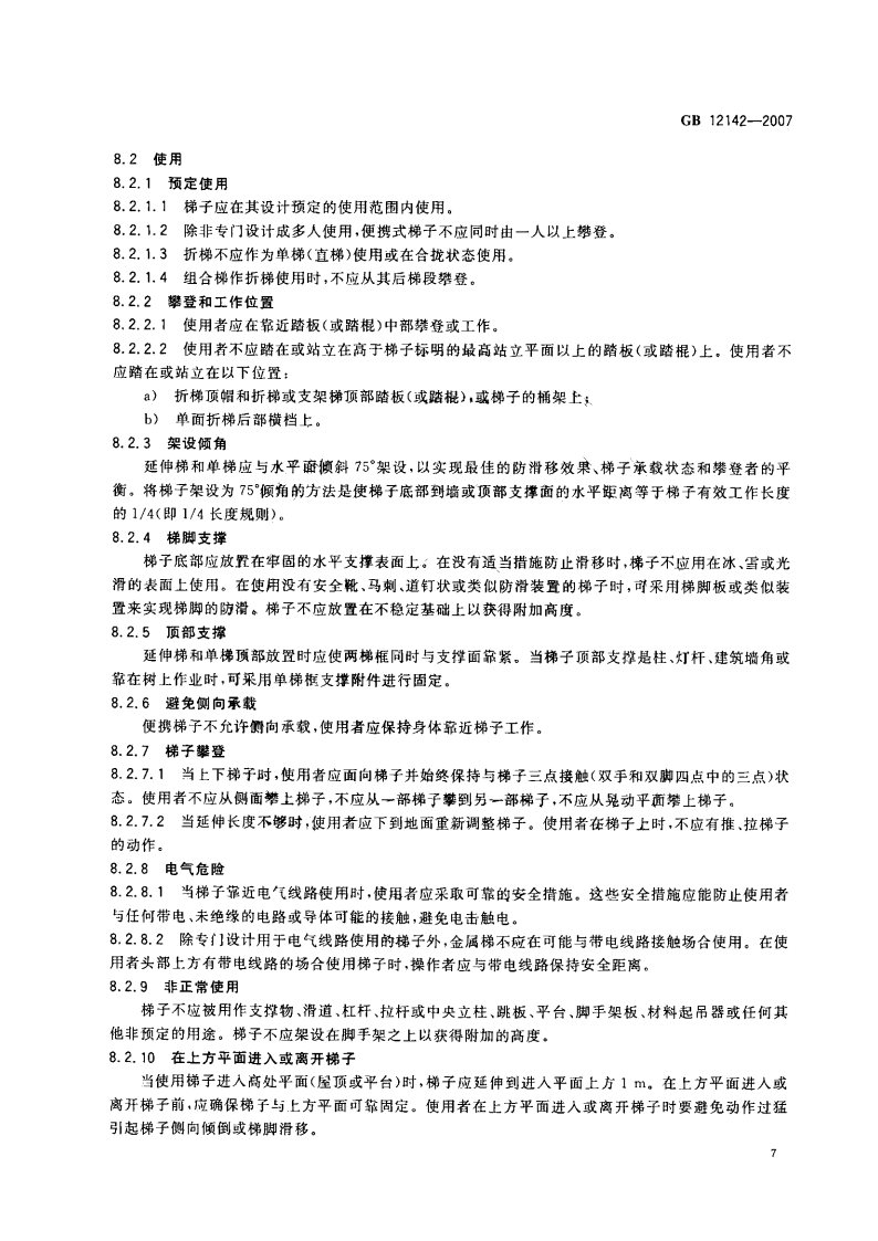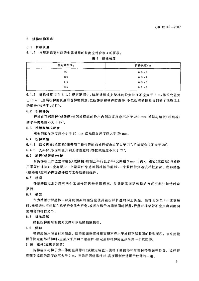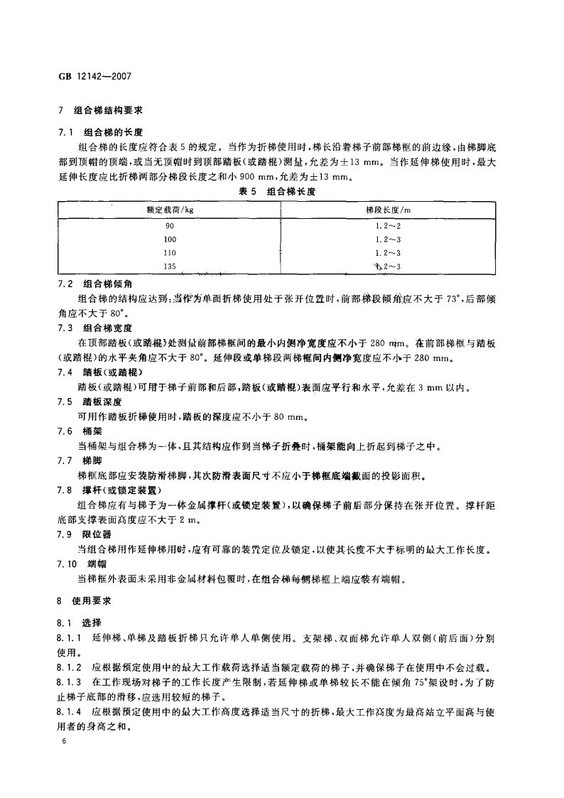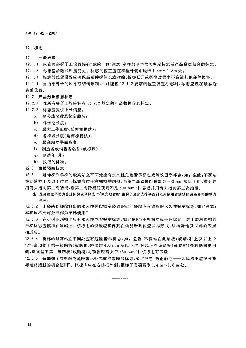 《便携式金属梯安全要求 GB 12142-2007》国家质量监督检验检疫总局、国家标准化管理委员会