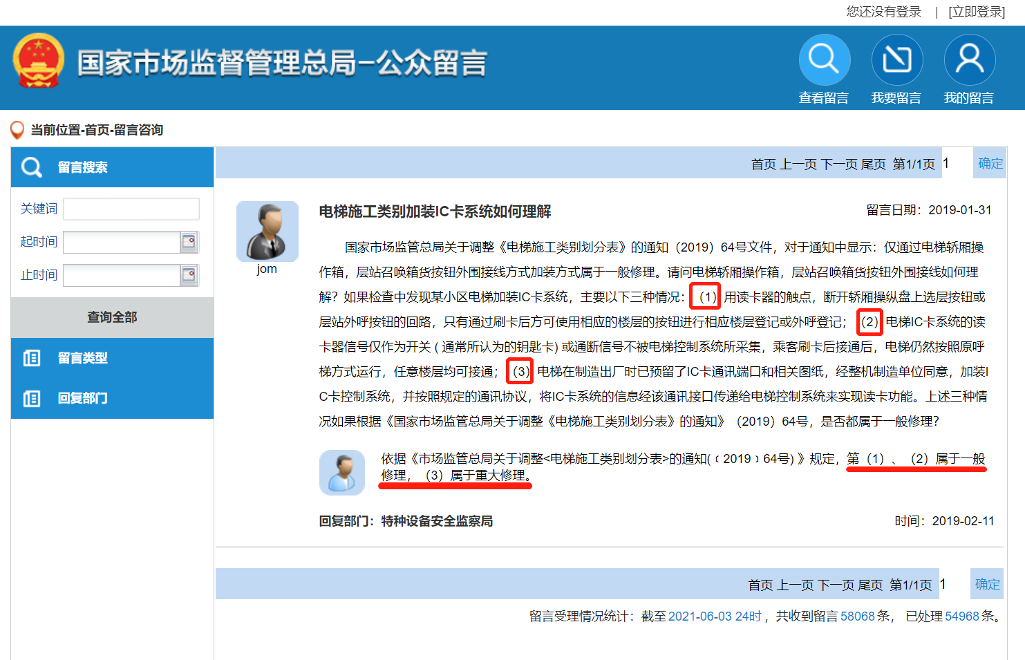 2、国家市场监督管理总局回复加装梯控哪种是一般修理和重大修理