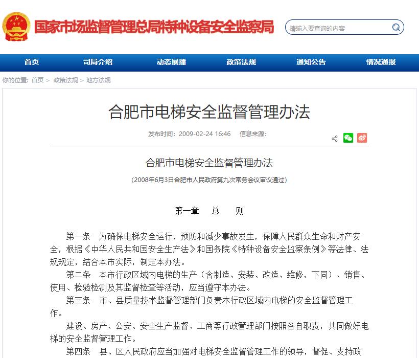 合肥市电梯安全监督管理办法