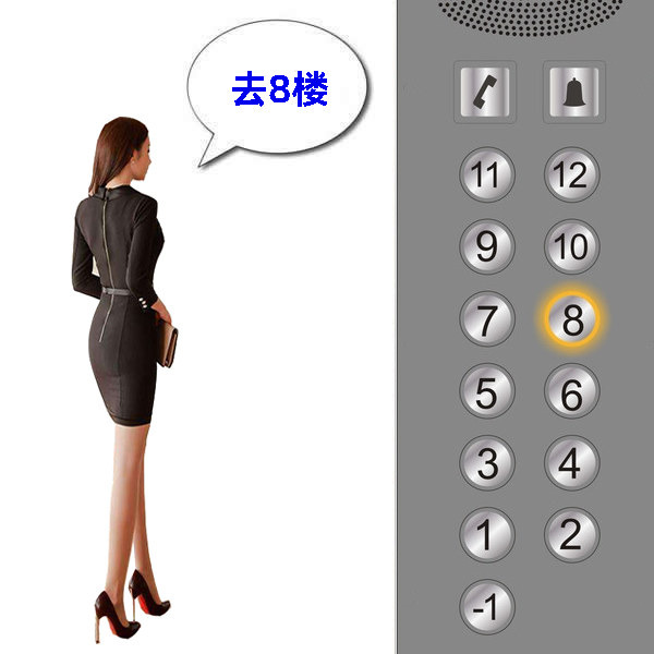 则对应按键自动点亮,招梯和乘梯均不需要手按键,无接触乘梯