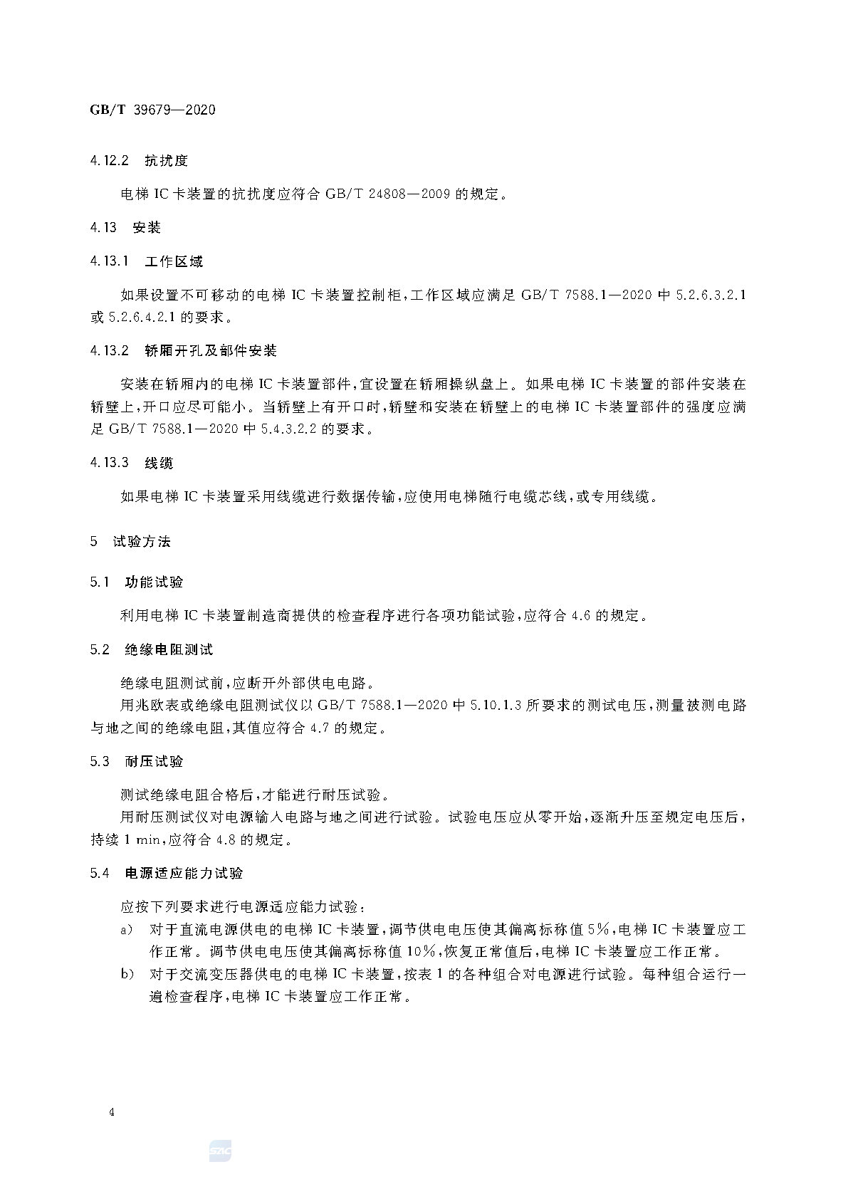 本标准规定了电梯IC卡装置的技术要求、试验方法、检验规则、标志、标签和随行文件,以及包装、运输和贮存要求。?