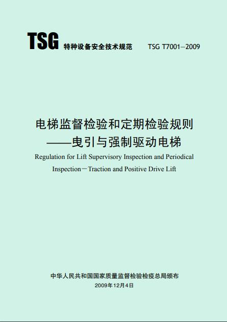 《电梯监督检验和定期检验规则——曳引与强制驱动电梯 TSG T7001—2009》质量监督检验检疫总局