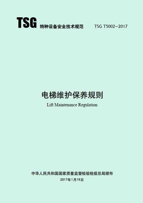《电梯维护保养规则 TSG T5002—2017》国家质量监督检验检疫总局