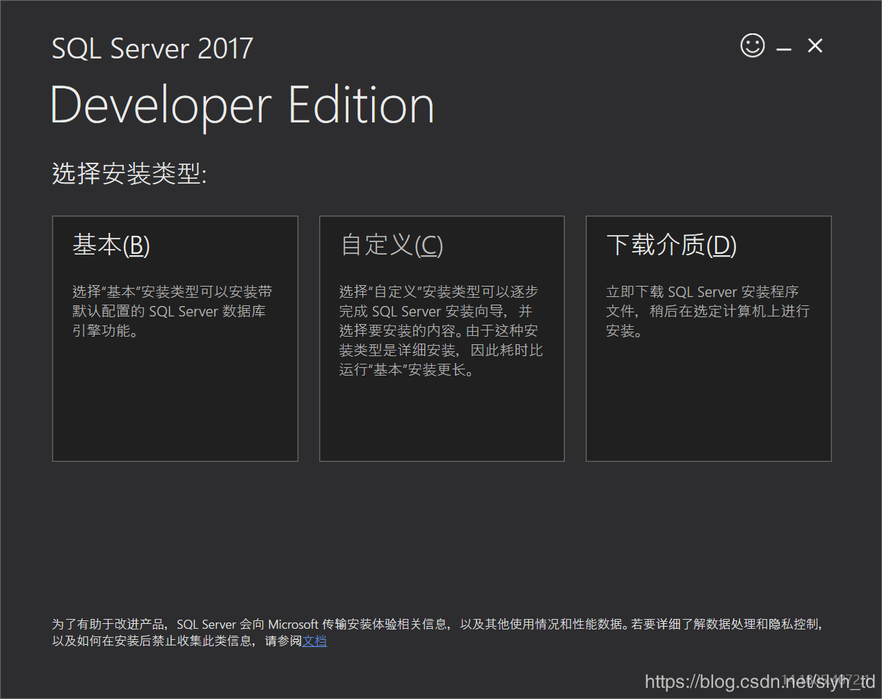 第一部分 SQL Server 2017 Developer 安装: