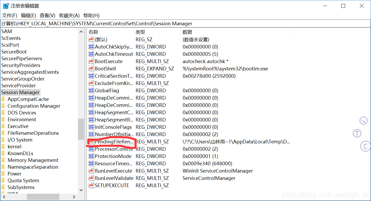 “HKEY_LOCAL_MACHINE \ SYSTEM \ CurrentControlSet \ Control \ Session Manager”,在右侧找到“PendingFileRenameOperations”删除“PendingFileRenameOperations”