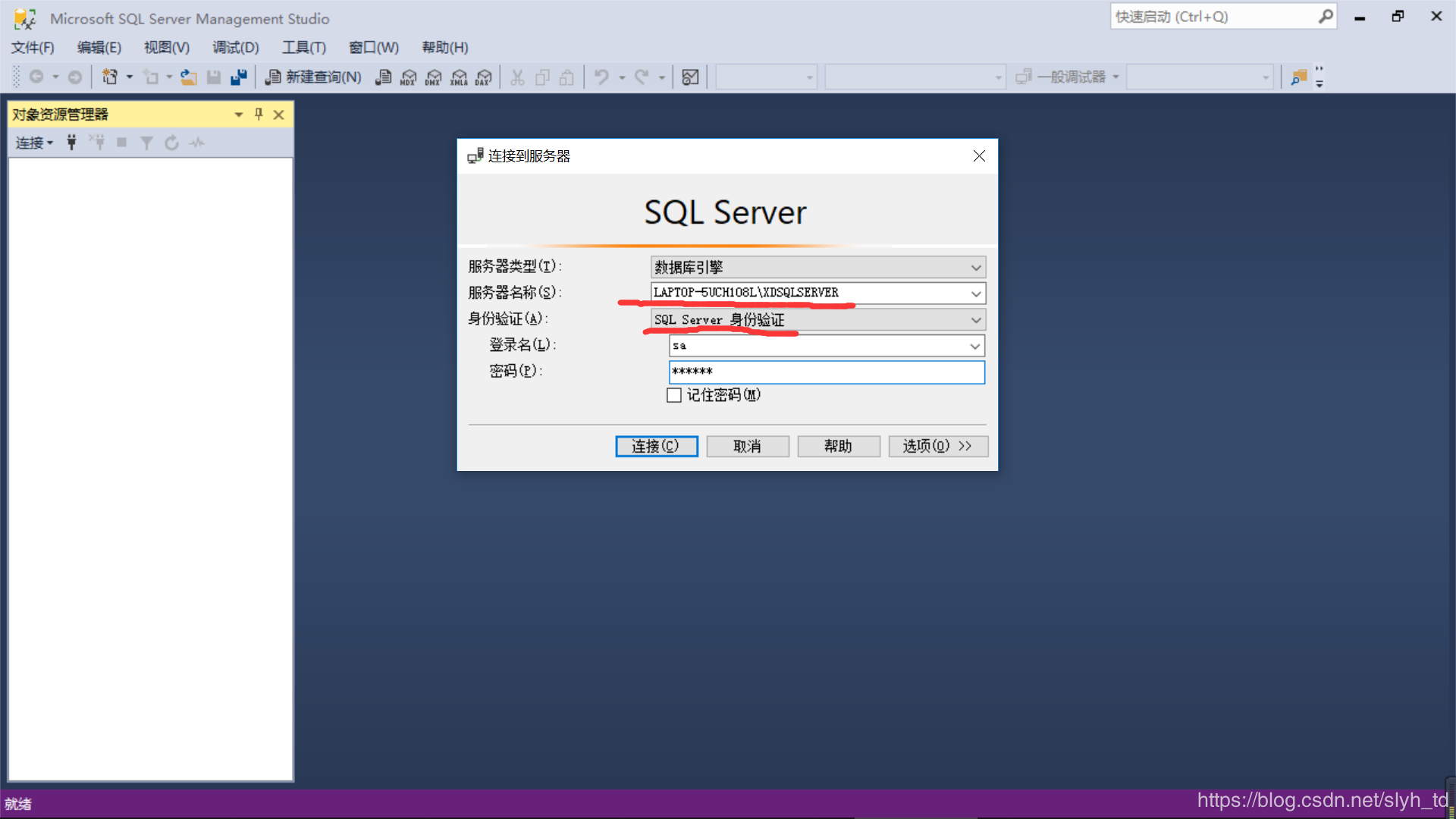管理员名字为sa 注意要添加当前用户