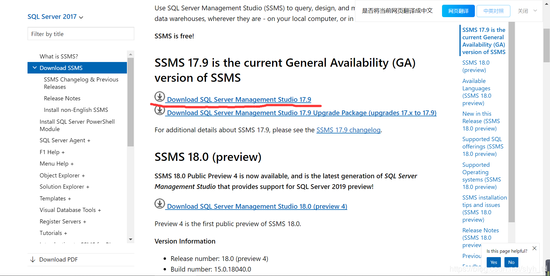 1. 官网下载SQL Server Management Studio https://docs.microsoft.com/en-us/sql/ssms/download-sql-server-management-studio-ssms?view=sql-server-2017