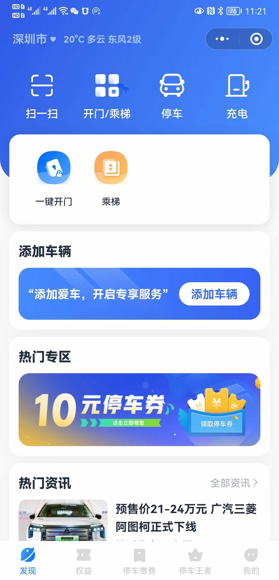 一个小程序可以停车场月租临停缴费、二维码开门乘梯过闸机、访客开门乘梯、扫码充电及减免停车费