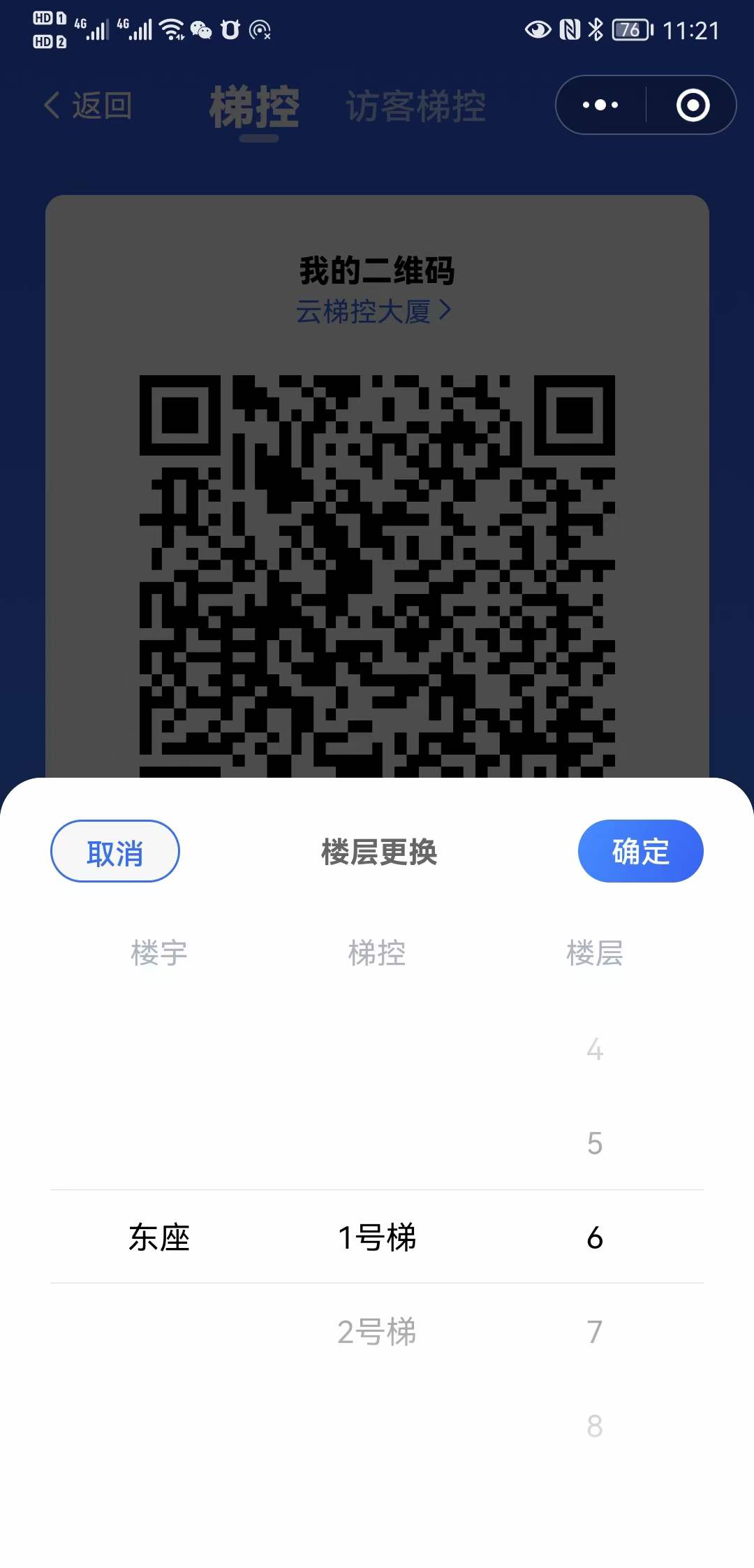 二维码乘梯有所有楼层权限,可选择楼层